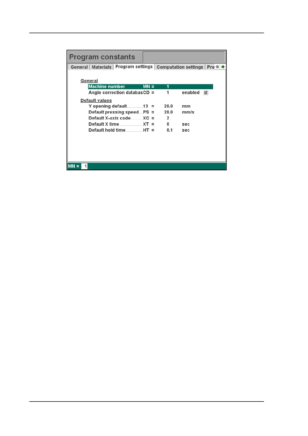The selected machine number will be stored with the bending program. This number will