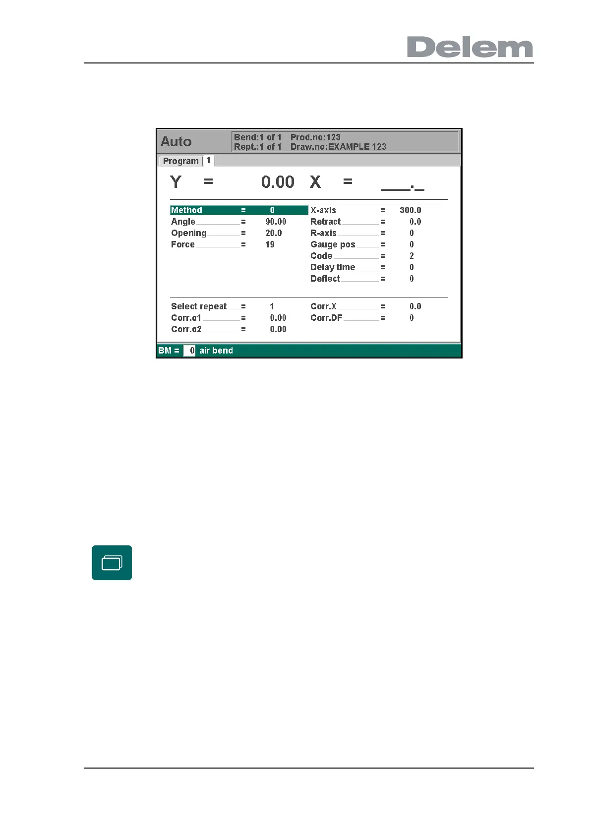 In the automatic mode a bend program can be executed automatically bend by bend after