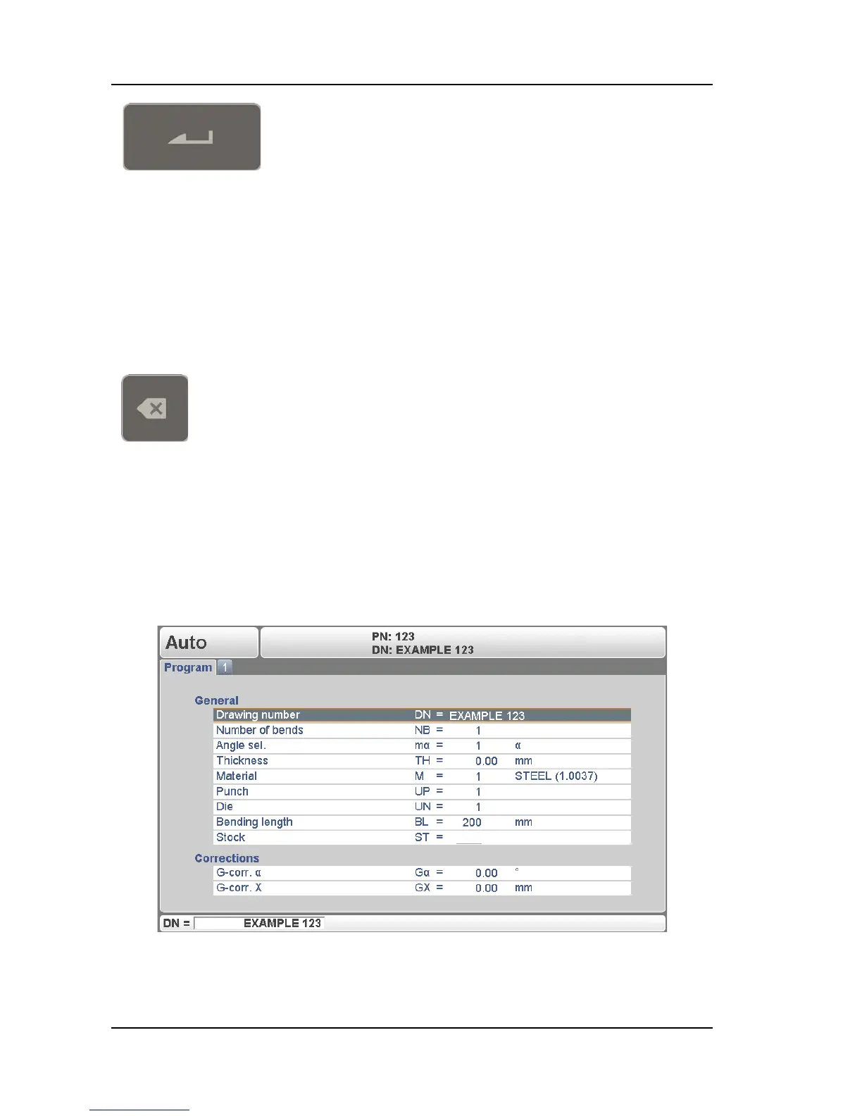 parameters. These parameters are the same for every bend of the program.