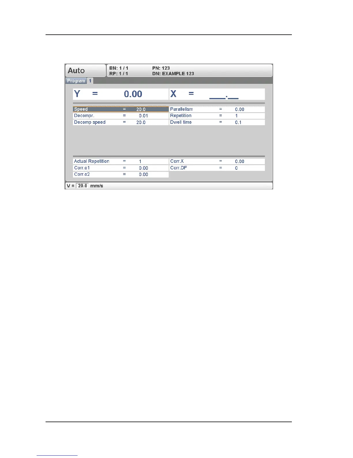Working speed (pressing speed). Initially, the value for this parameter is copied from the