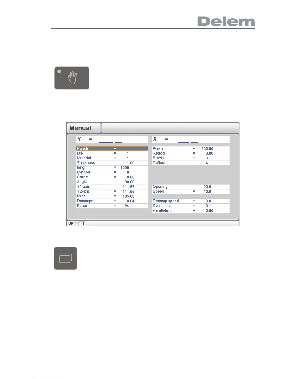 After pushing the ‘Start’ button all parameters are active and the backgauge will go into
