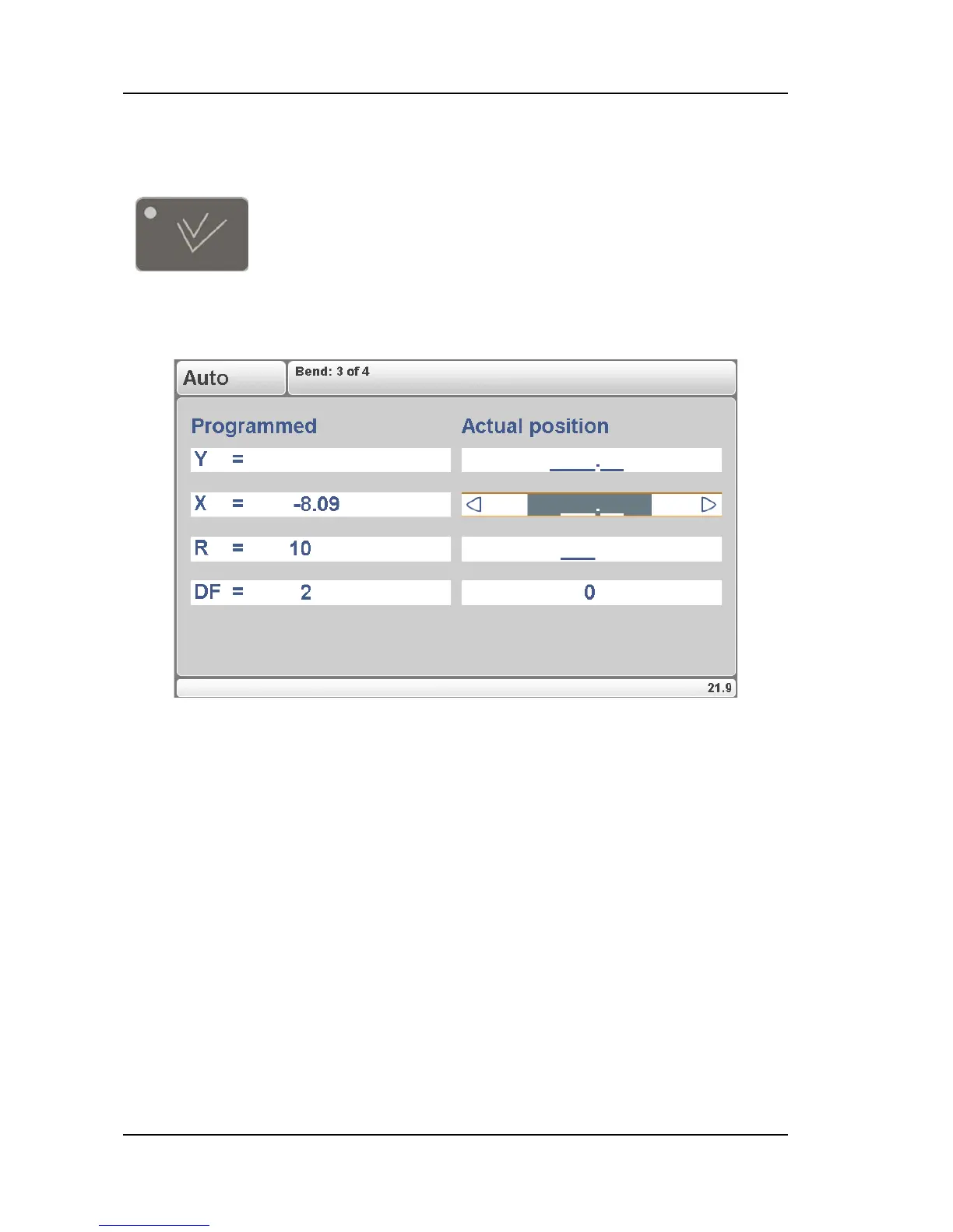 After pressing the key ‘manual pos’, the following screen appears: