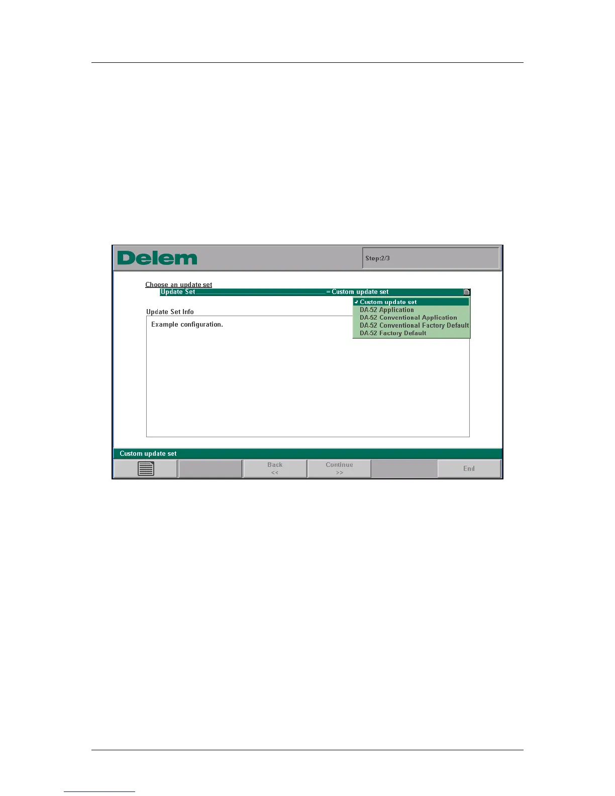 remove the Delem update.cfg. The Updater will automatically show all update sets to the