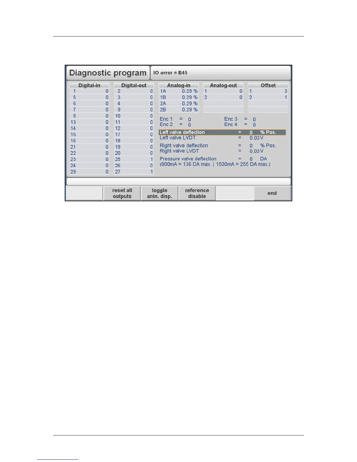 3. Move cursor to ‘Left valve LVDT’. This is the read out of the left proportional valve. The