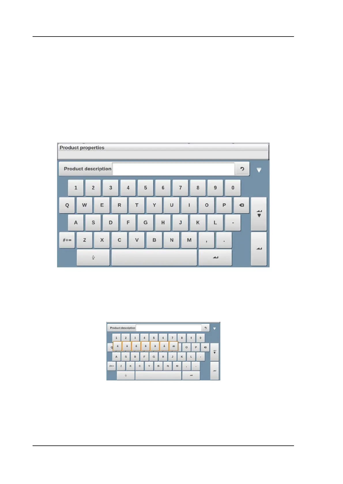 fields which enable to use alphanumerical strings, the keyboard is completely available.
