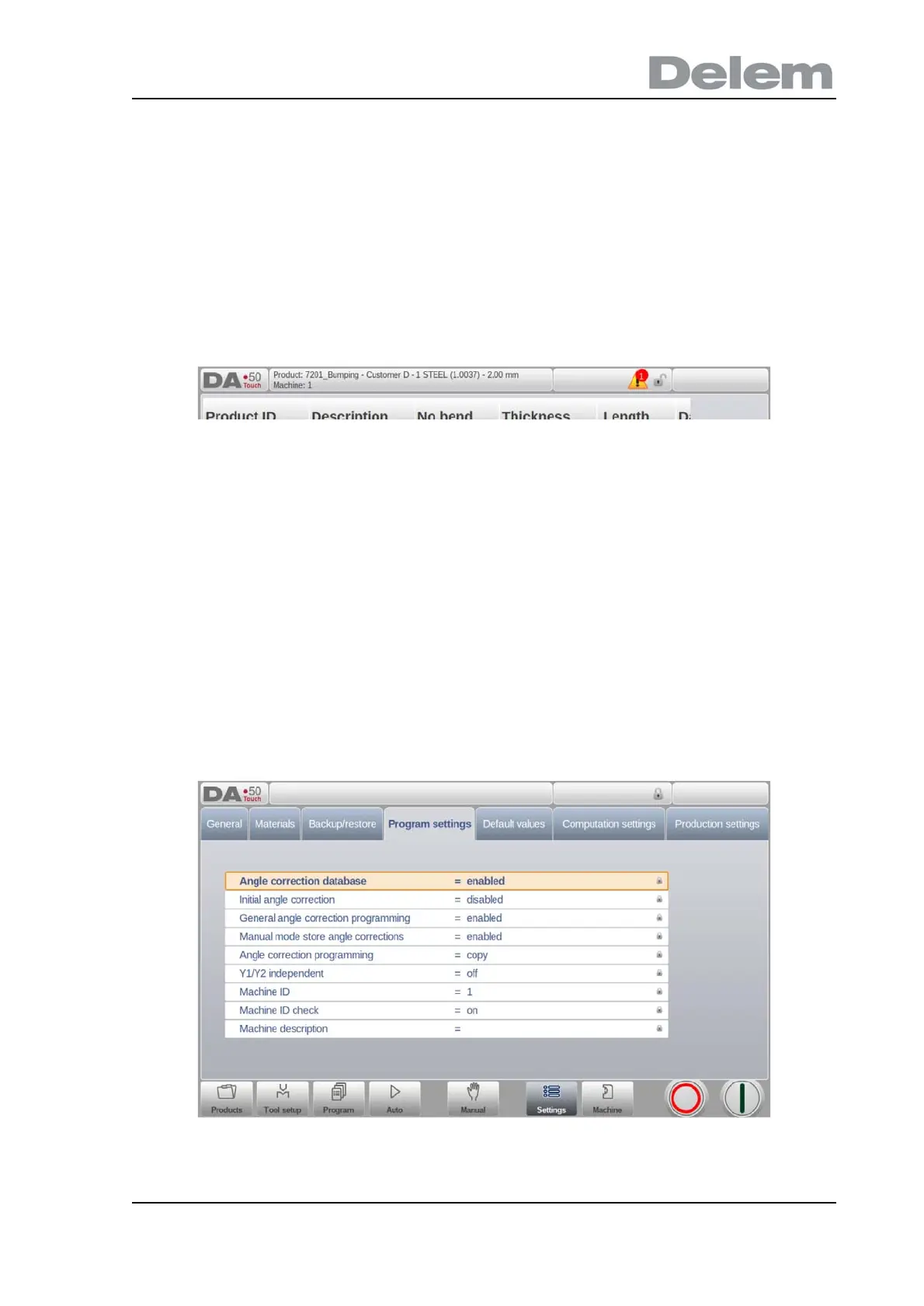 • In Program Lock, only a product can be selected and executed in Automatic mode.