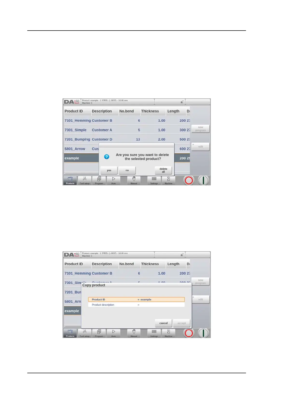2.1.4. Edit, Copying and Deleting a product or program