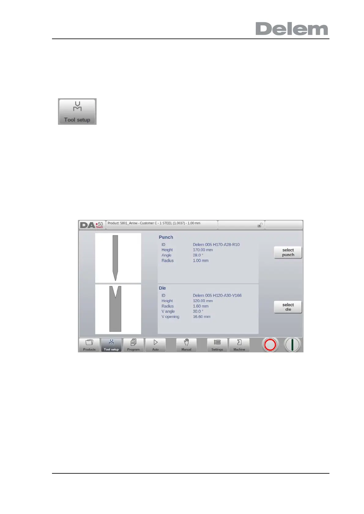 The Upper and Lower tool, resp. Punch and Die, in the machine are shown and can be