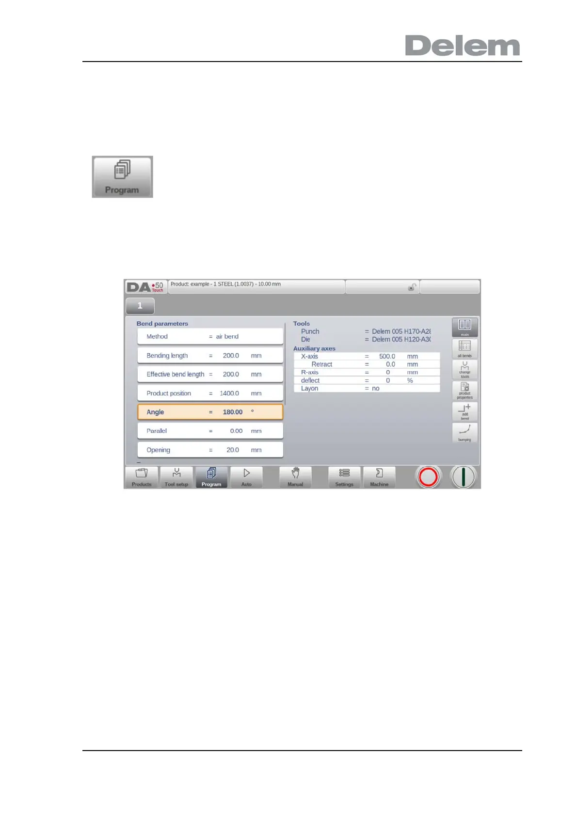 first to be programmed bend. The bend selector in the top of the screen can be used to