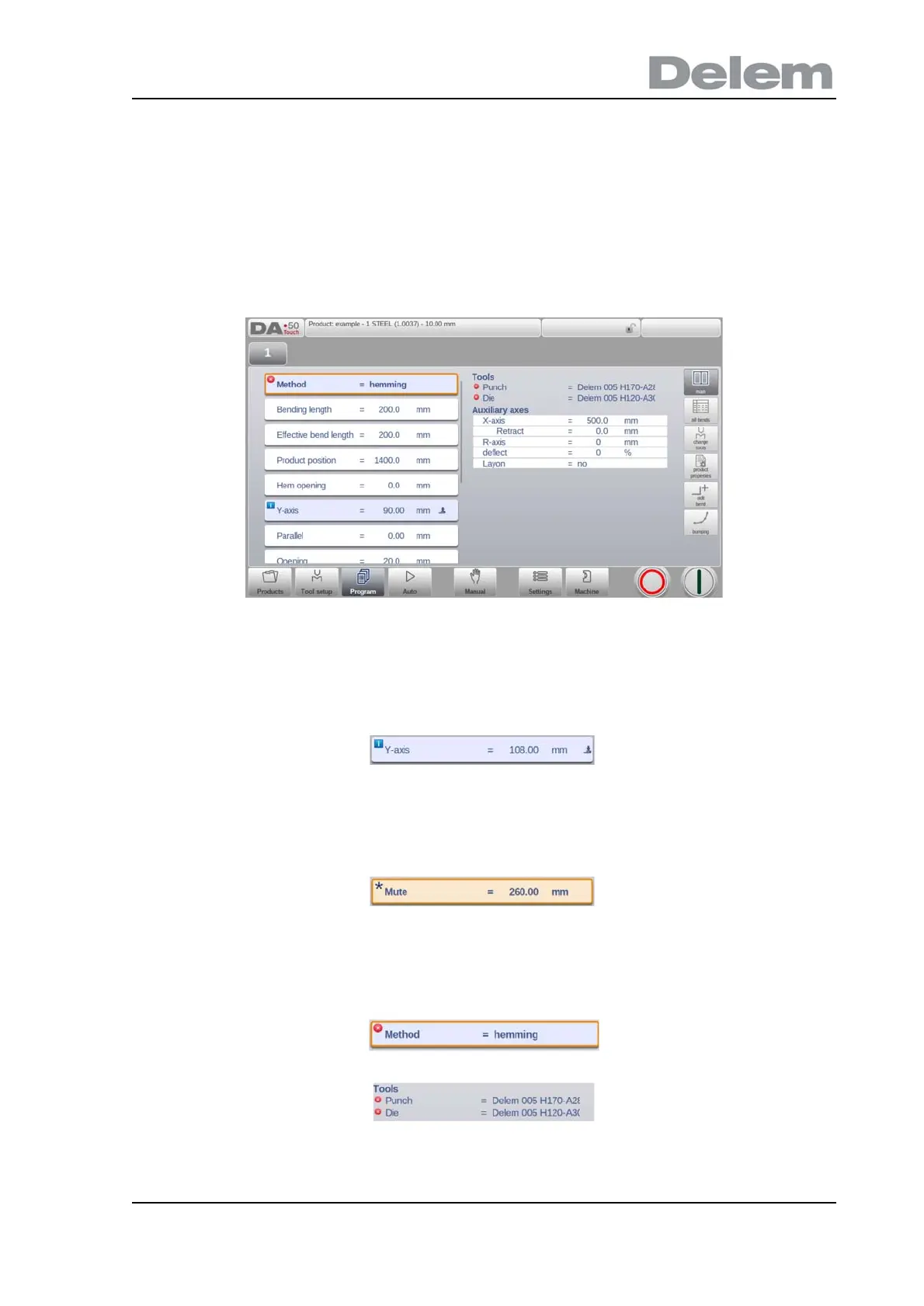 currently programmed values. This, eg. when a hemming bend is programmed with no