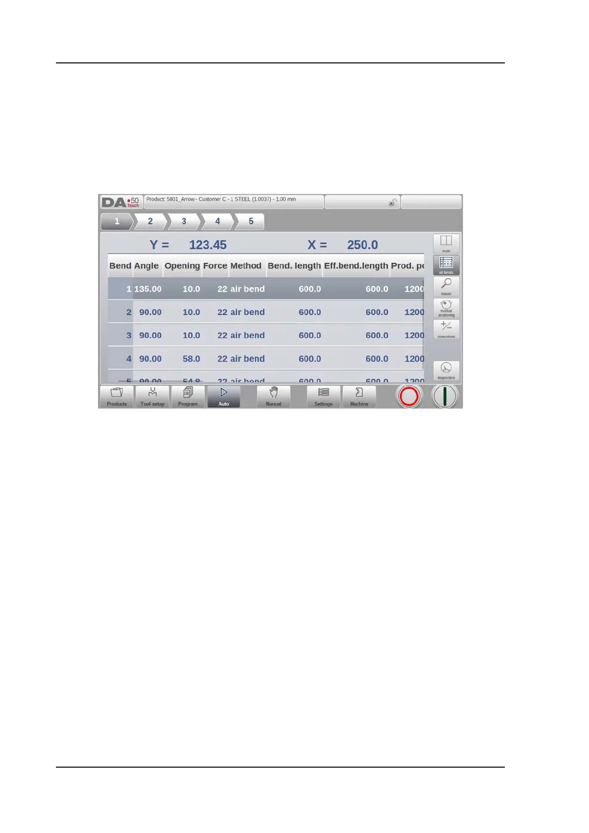 The all bends view mode shows a table including all bend data. The bends are shown row
