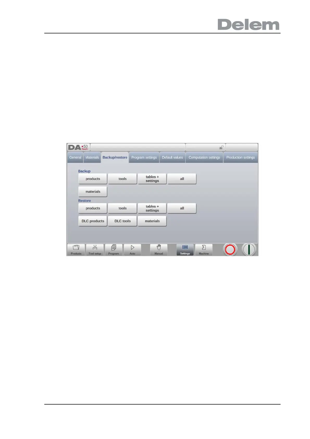 This tab offers the possibilities to backup and restore products, tools as well as settings and