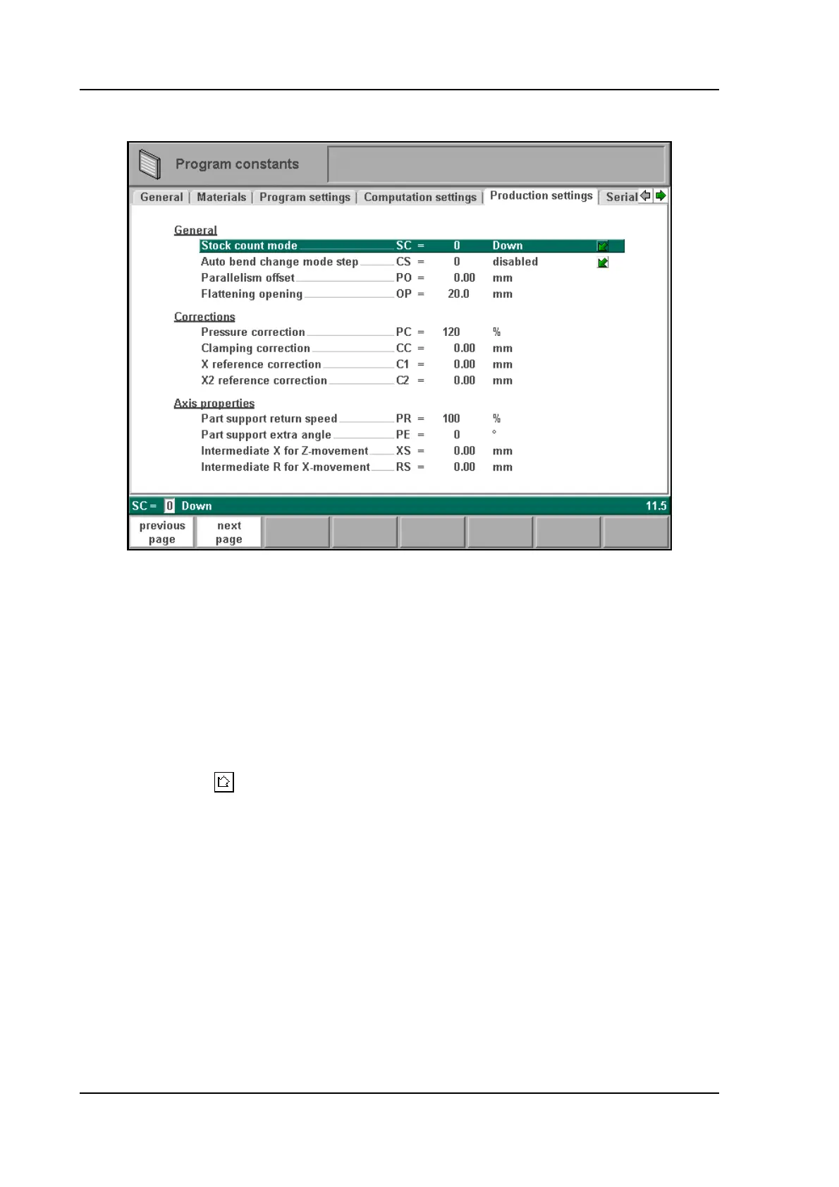 No automatic step change (next bending parameters active) will take place. To perform