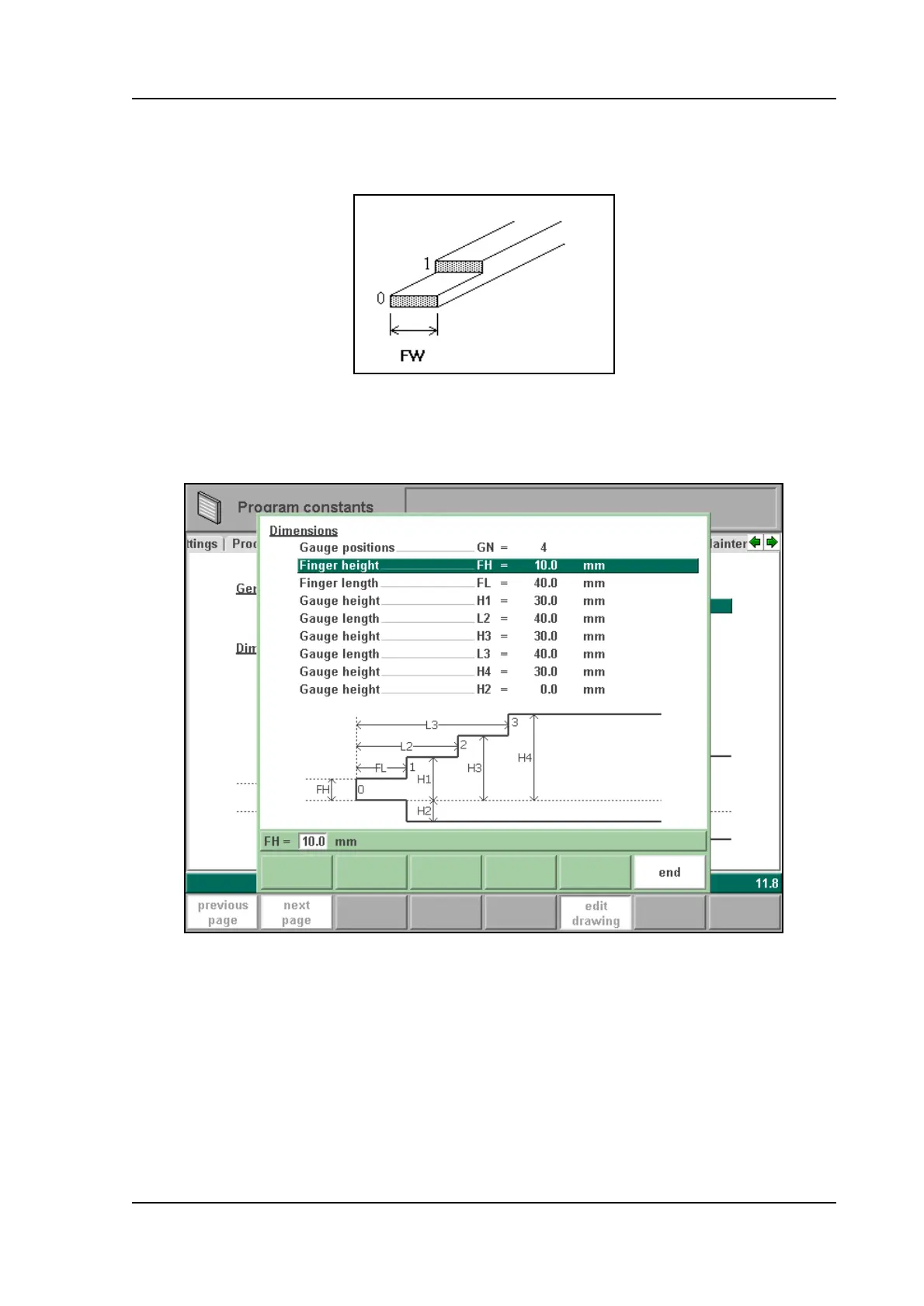 dimensions of the backgauge finger can be programmed.