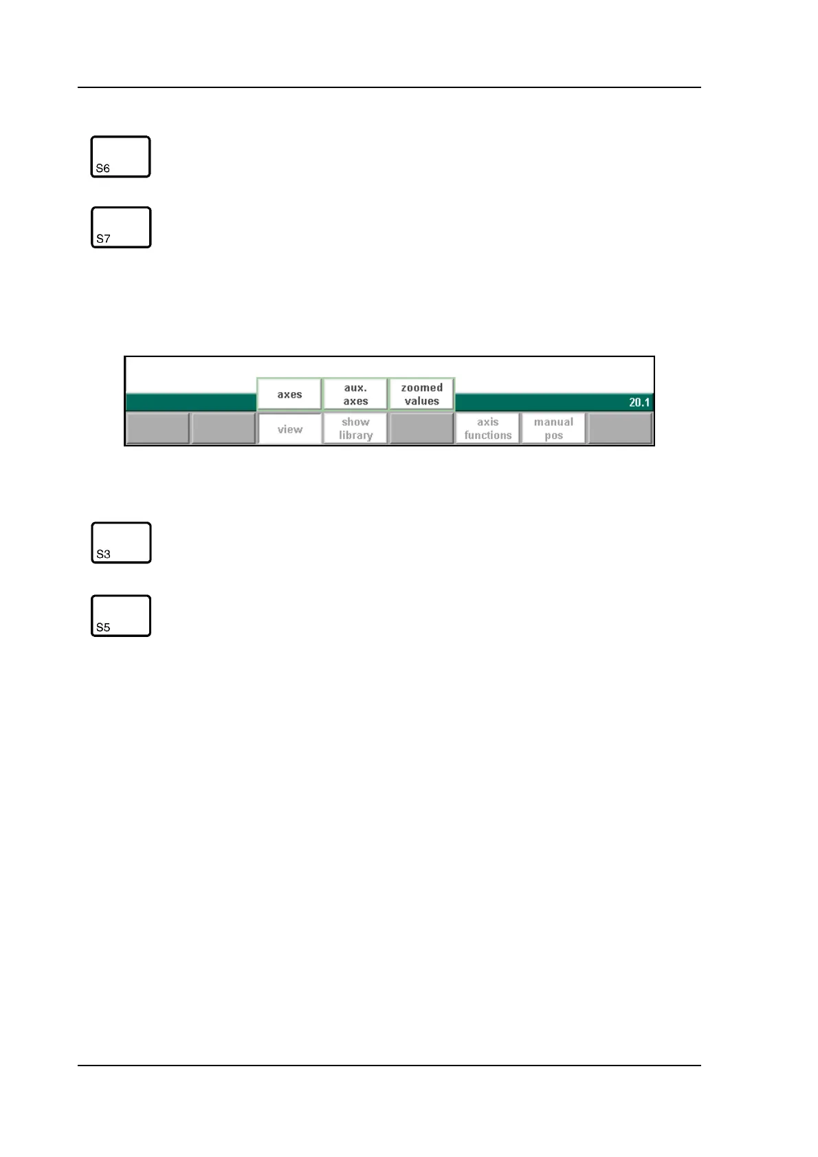 When the function key ‘View’ has been pressed a new, temporary button bar appears with