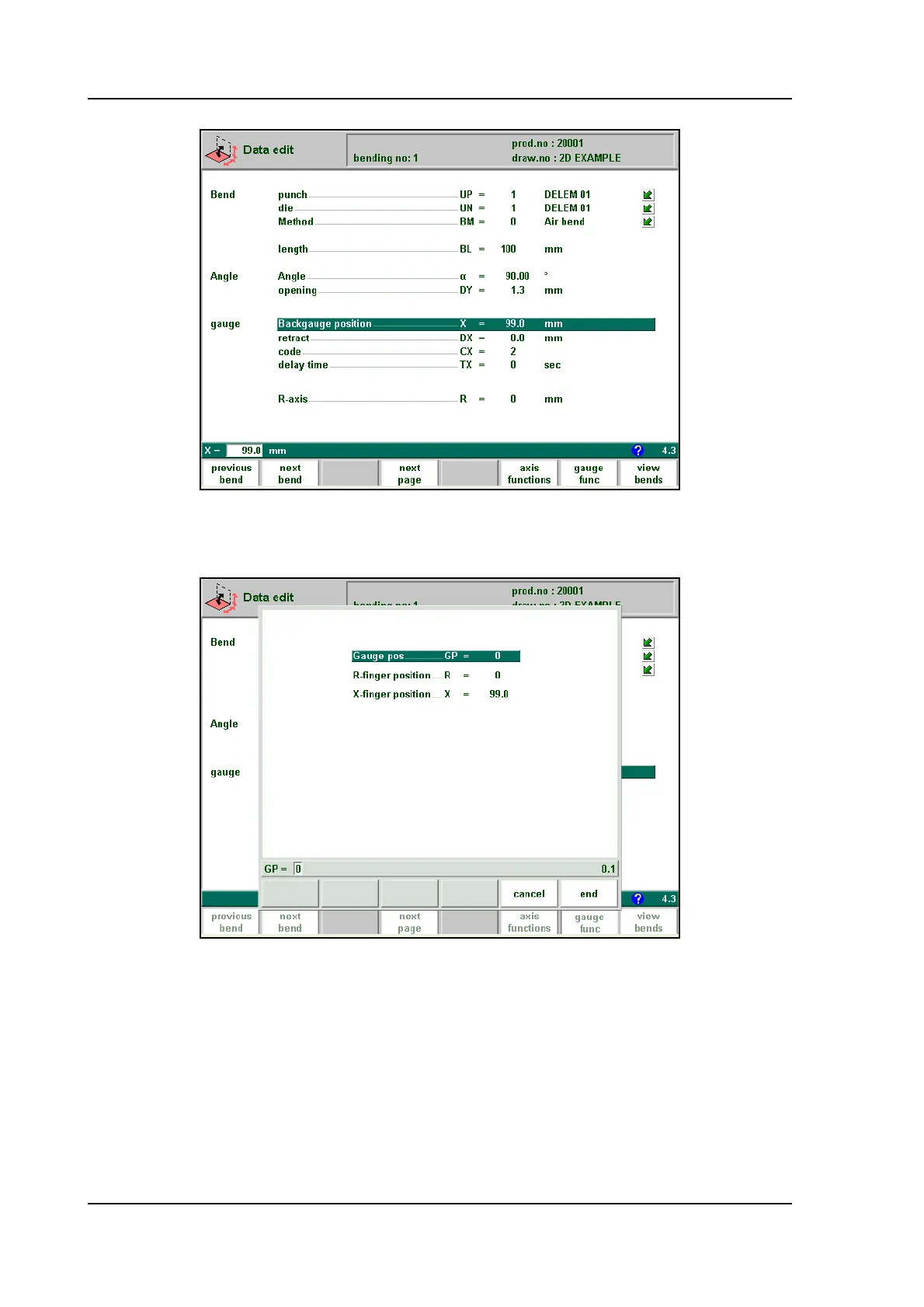 With this function you can program another ‘gauge position’ for this specific bend. The