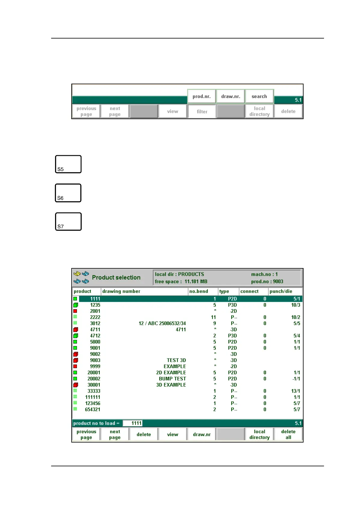When the function key ‘filter’ has been pressed a new, temporary button bar appears with addi-