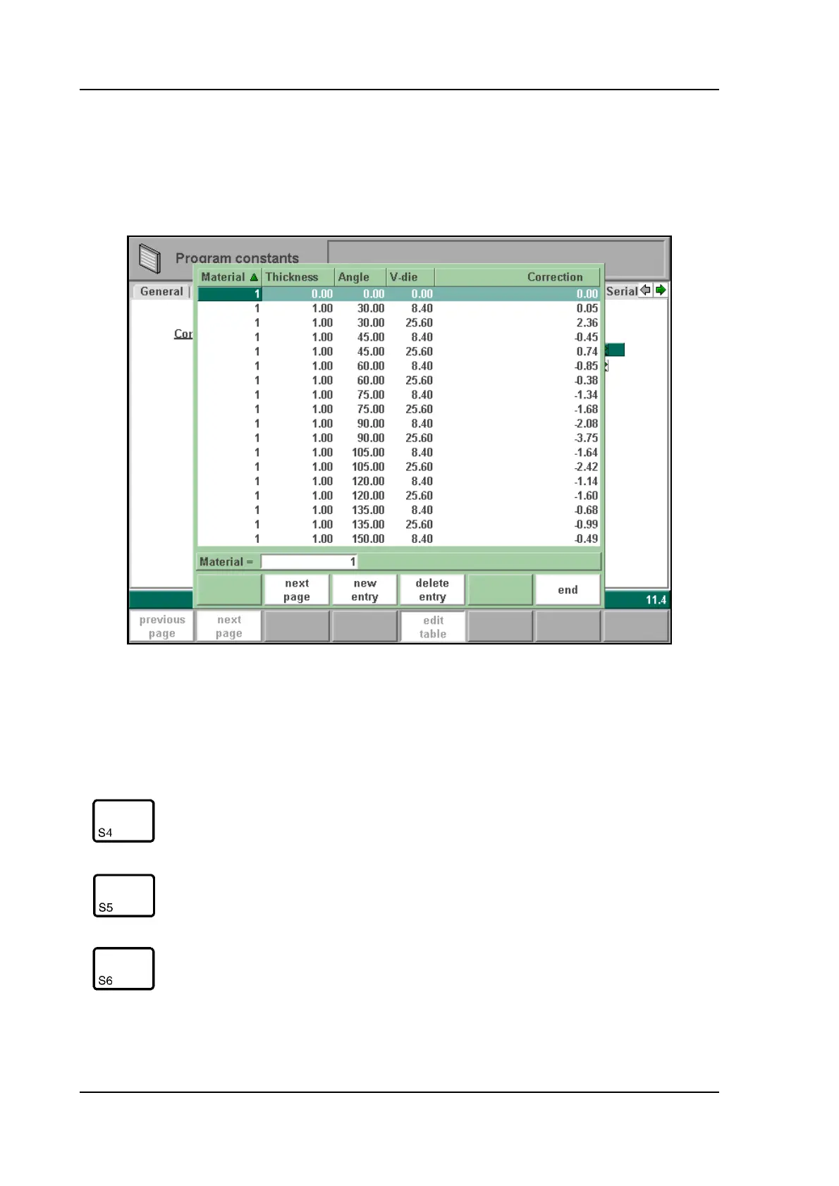 When a bend-allowance table is present and the cursor is on the parameter ‘active bend allow-