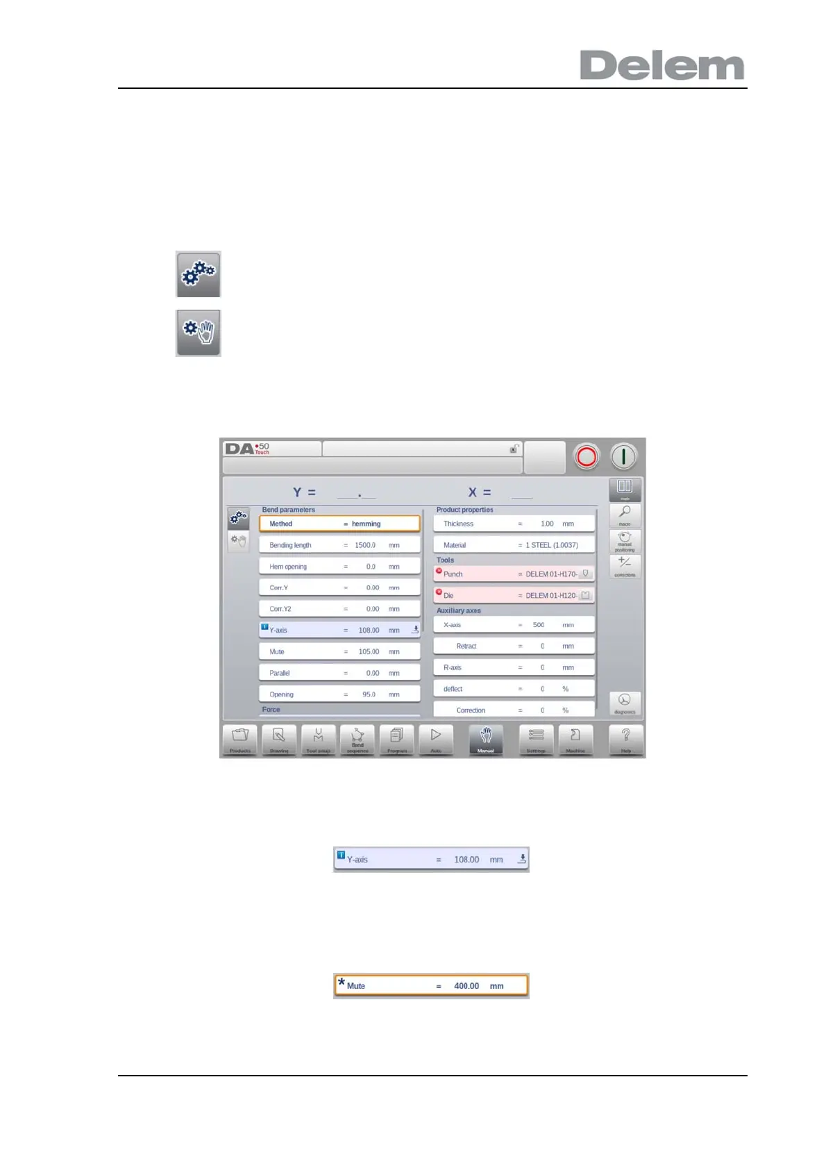 currently programmed values. This, eg. when a hemming bend is programmed with no