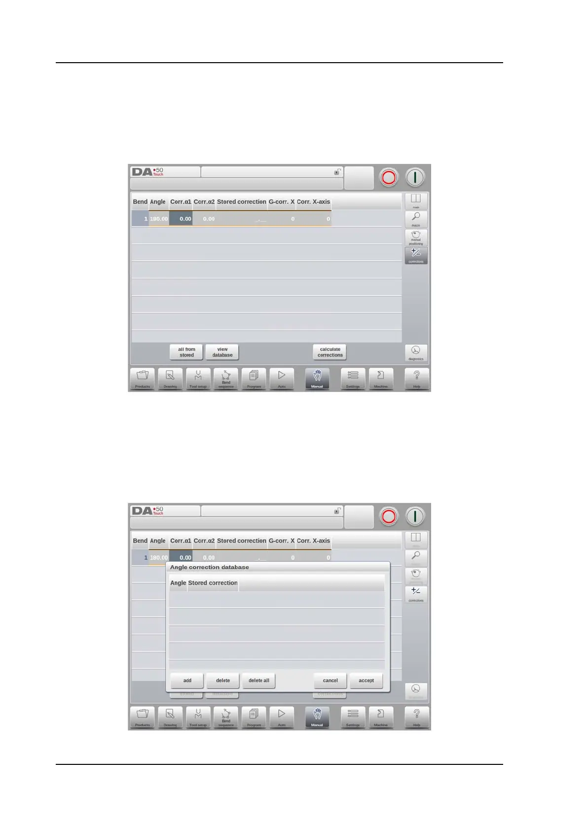 screen. Since these are of significant influence on the bend result, access to the database can