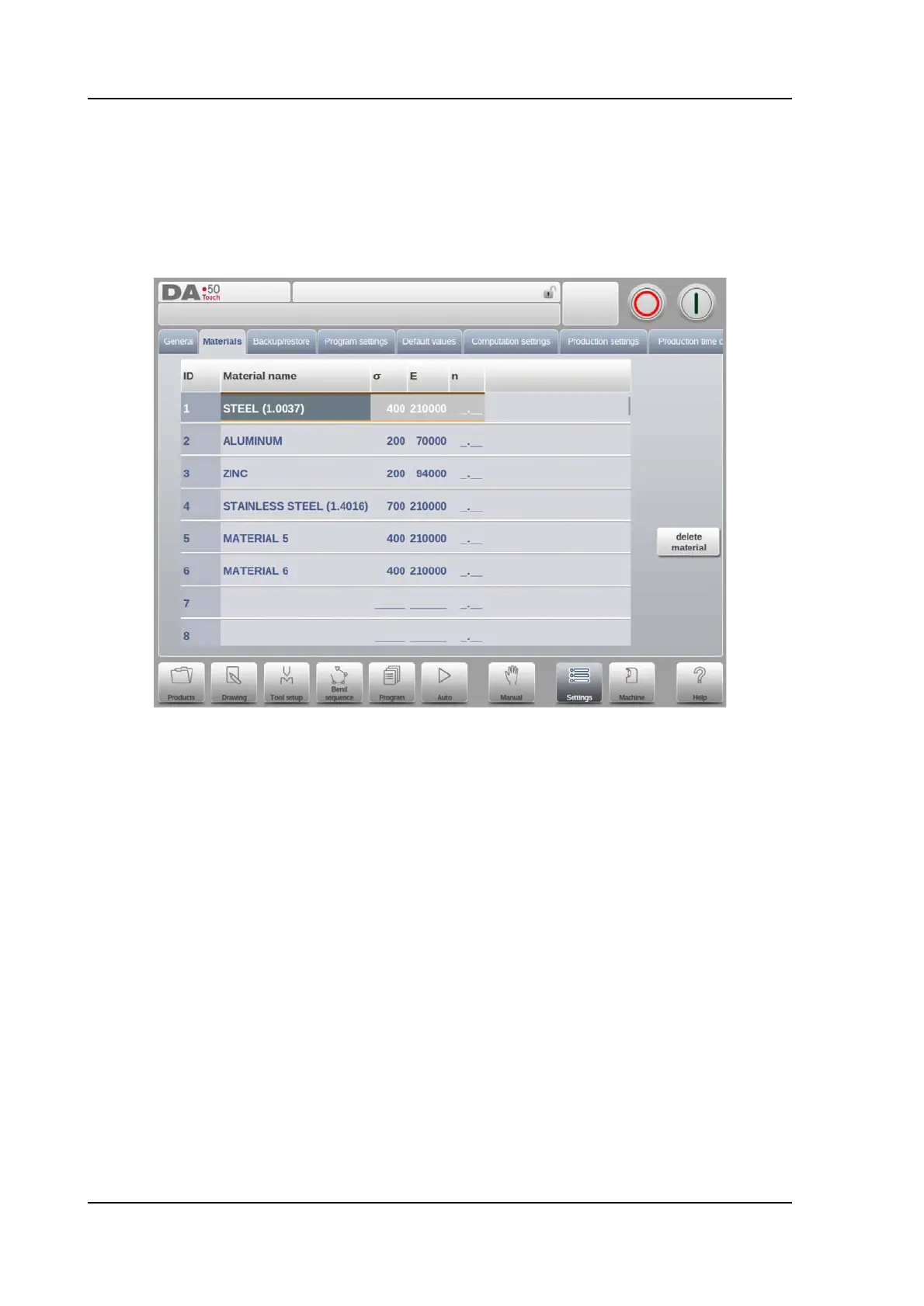 edited, new materials can be added or existing materials deleted. A maximum of 99 materials