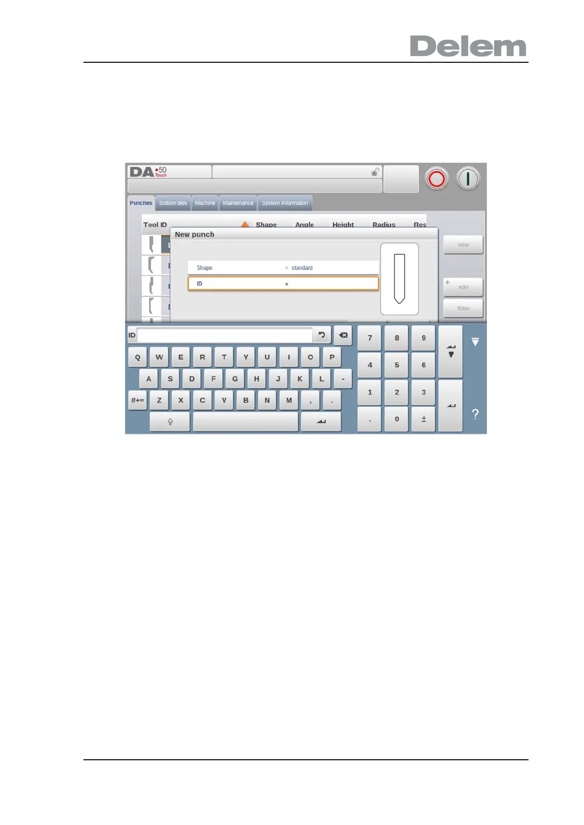 First the basic shape of the punch and its ID must be programmed. After that the shape details
