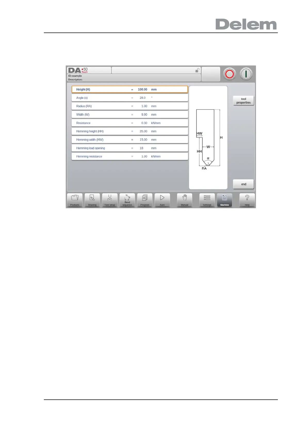 The total height of the tool. Important: this height value will be used in the bend depth