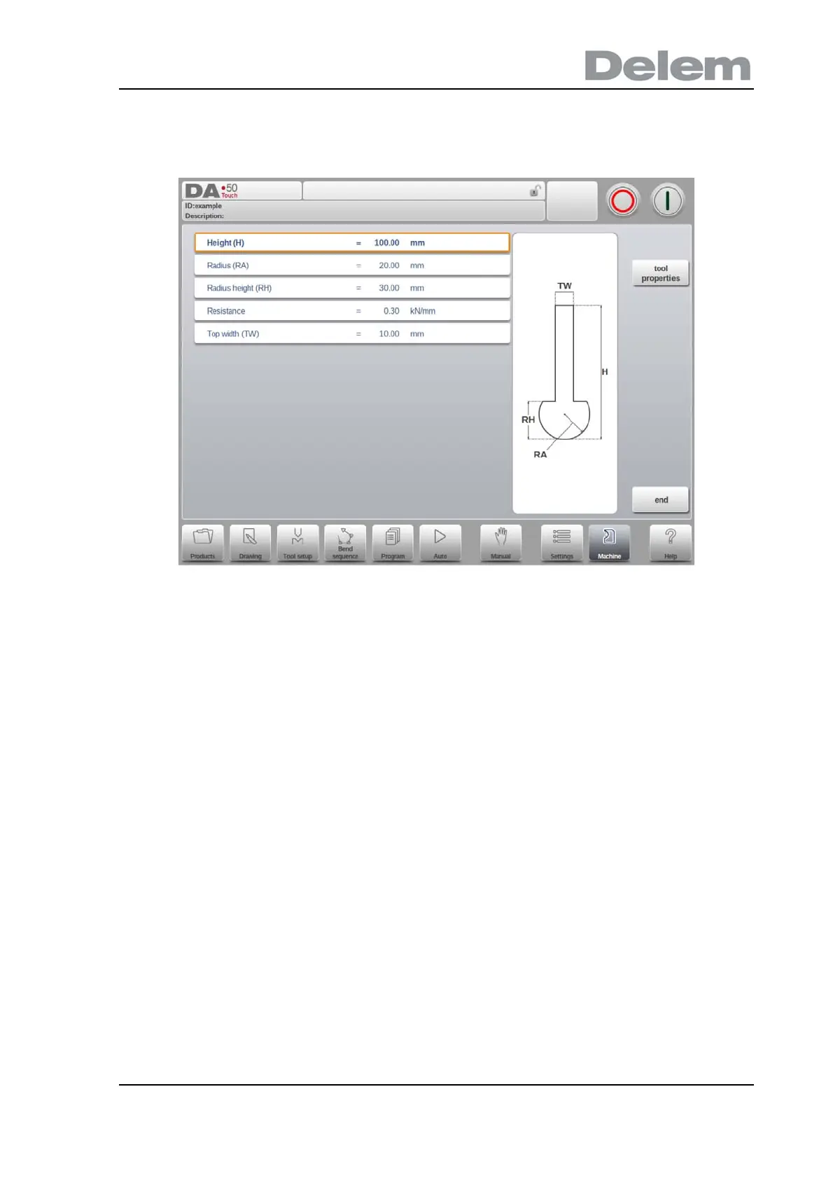 The height of the big radius part of the special tool as indicated in the drawing on the