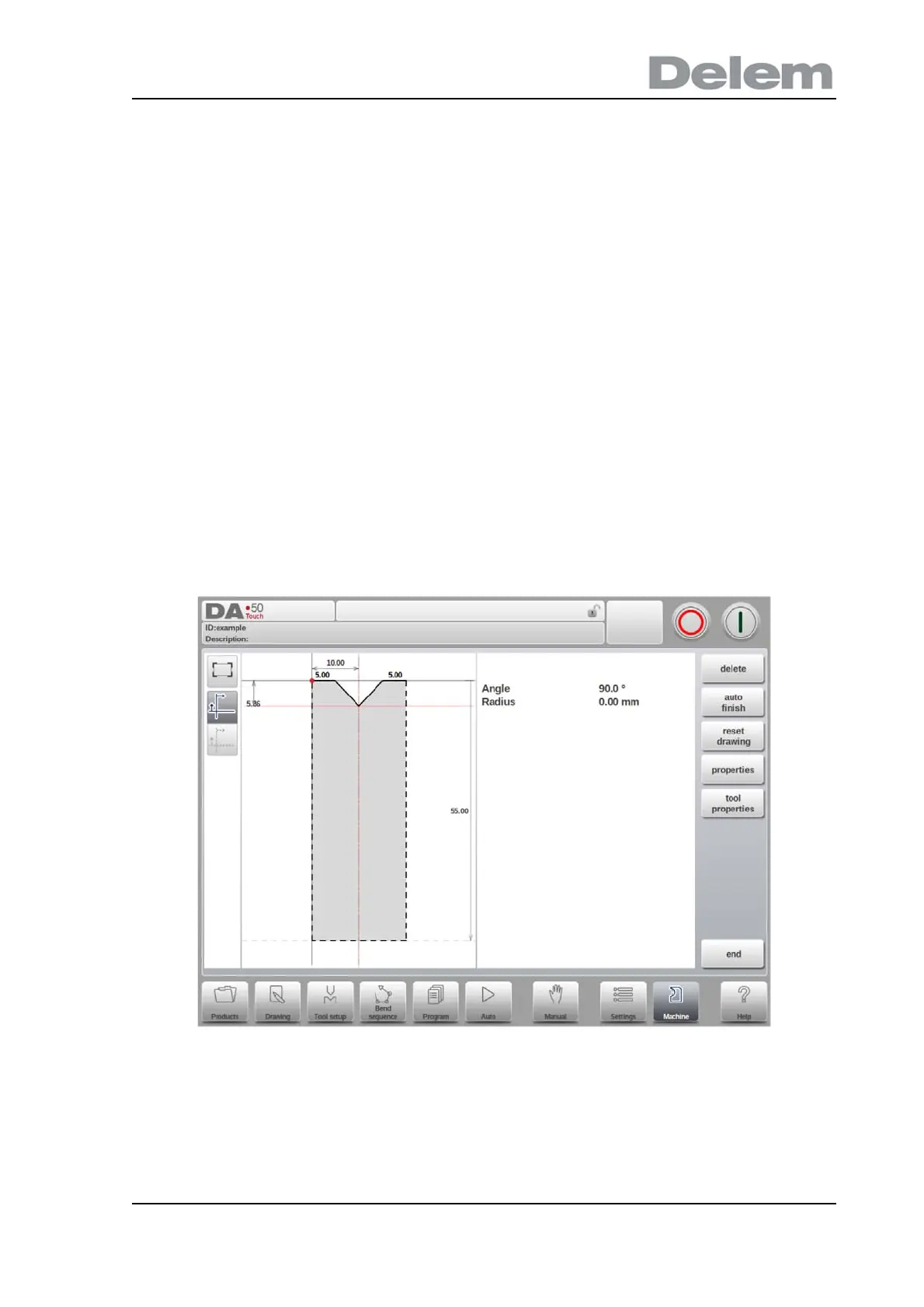 Drawing a tool profile is done by entering angle values and line length values. Also the Touch