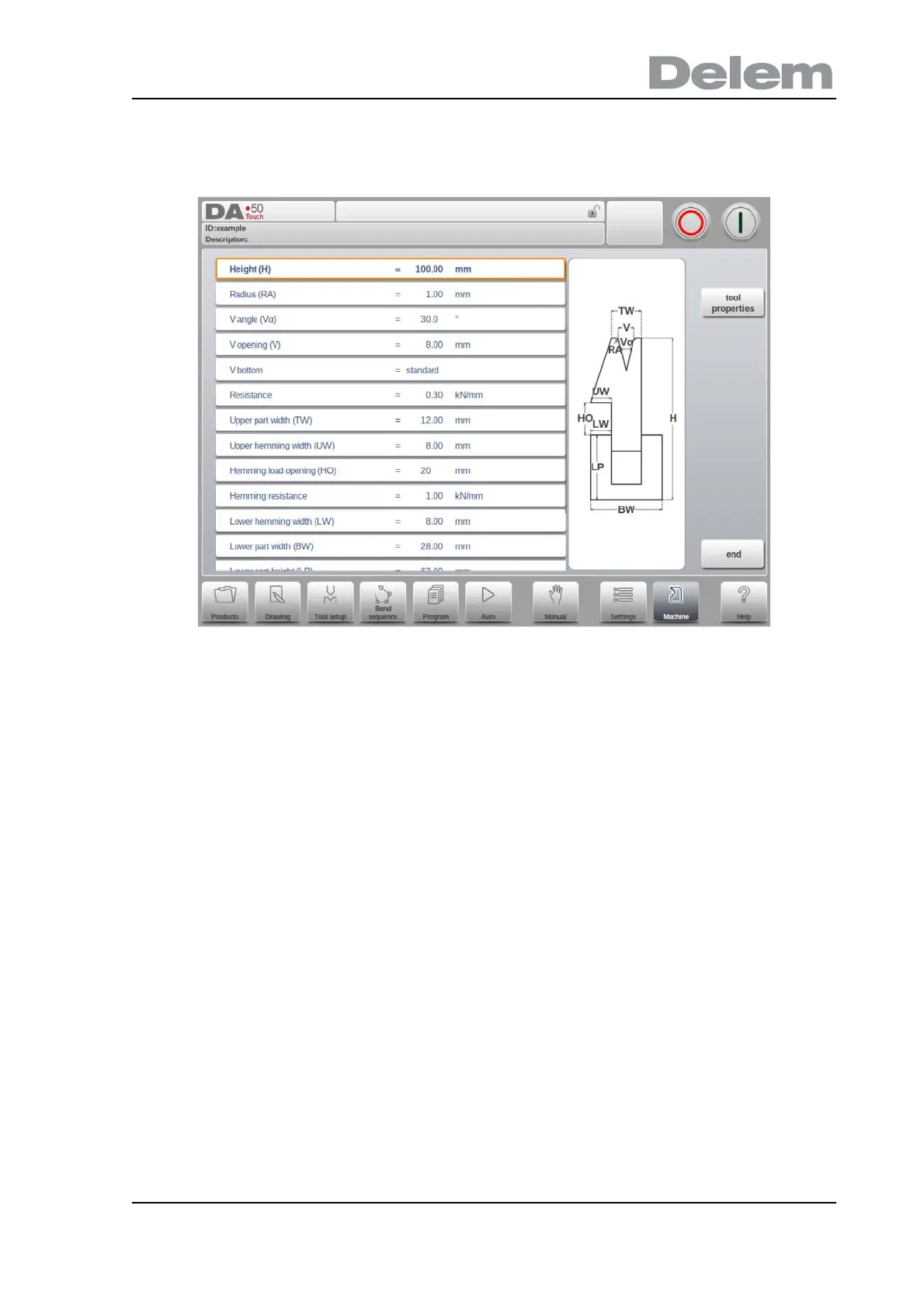 The total height of the tool. Important: this height value will be used in the bend depth