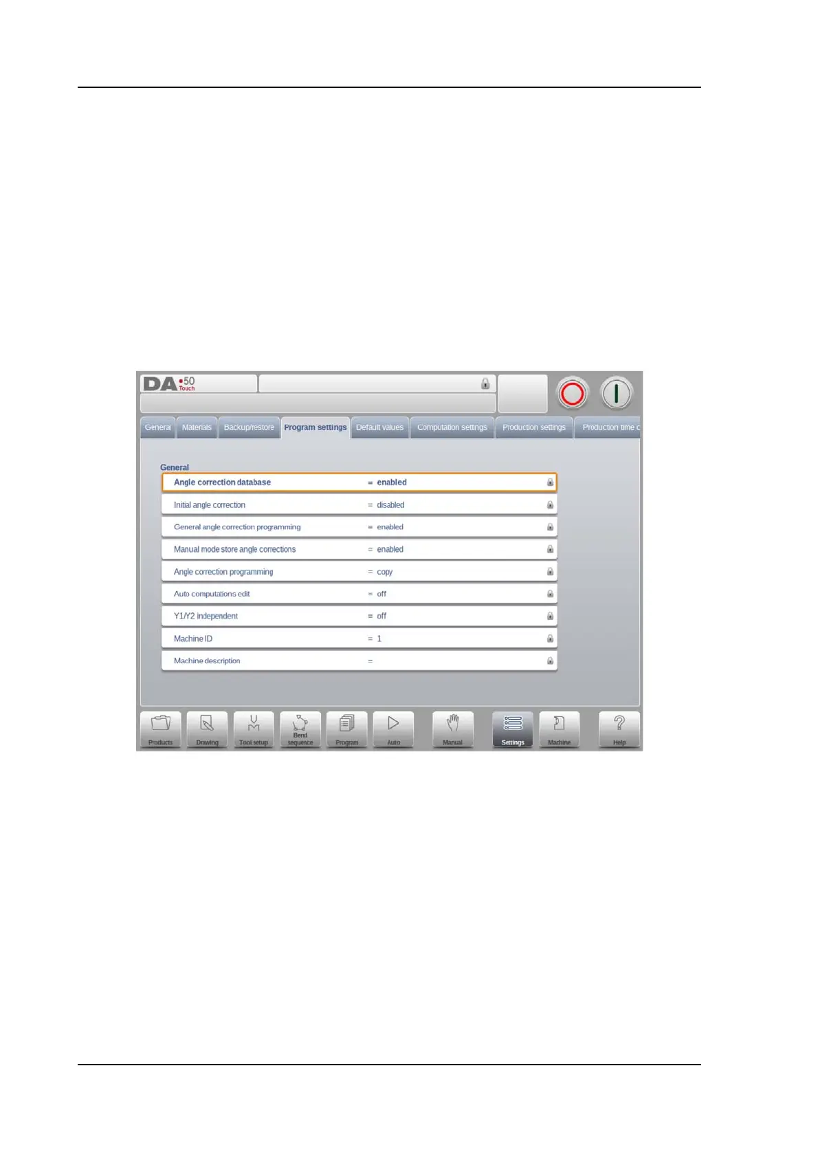 which is used, the control will be in Program Lock or Machine Lock. Program Lock wil show a