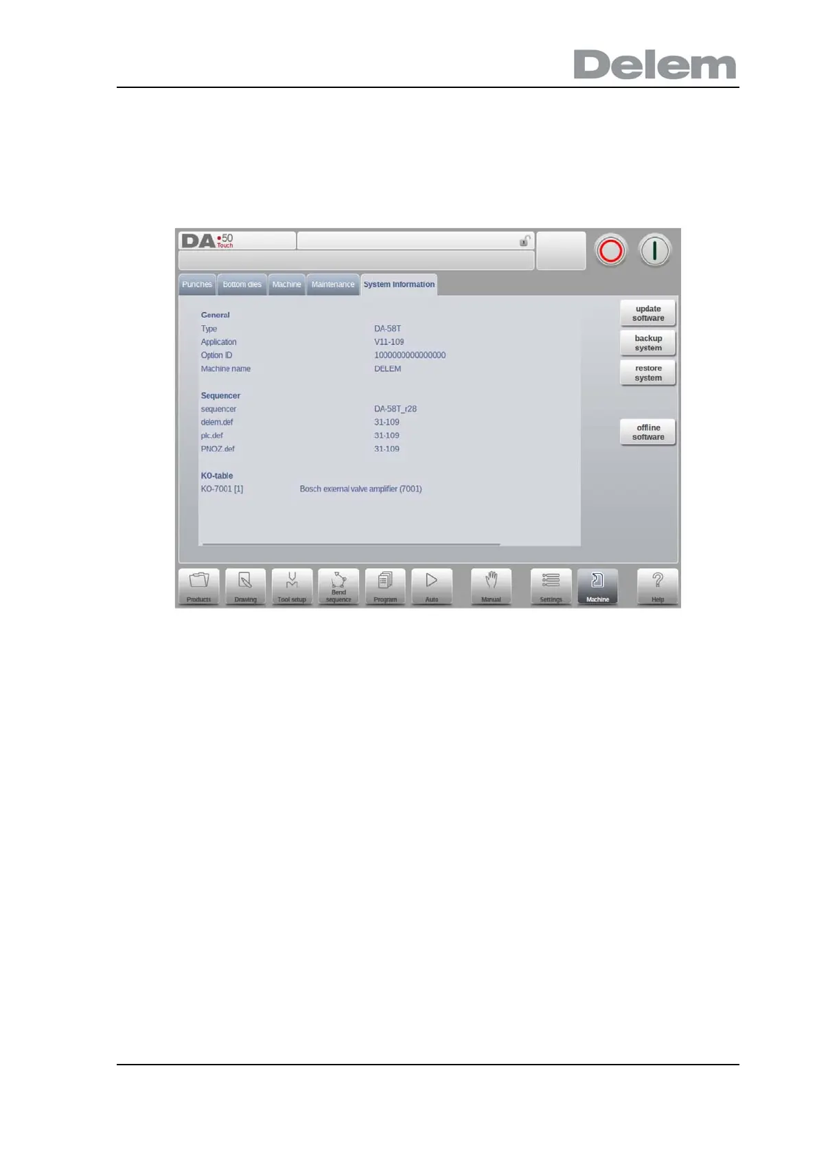 Machine menu.