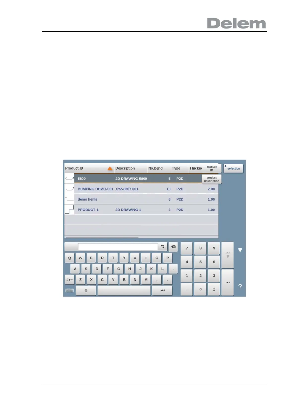 Selections can be done on Product ID or Product Description.