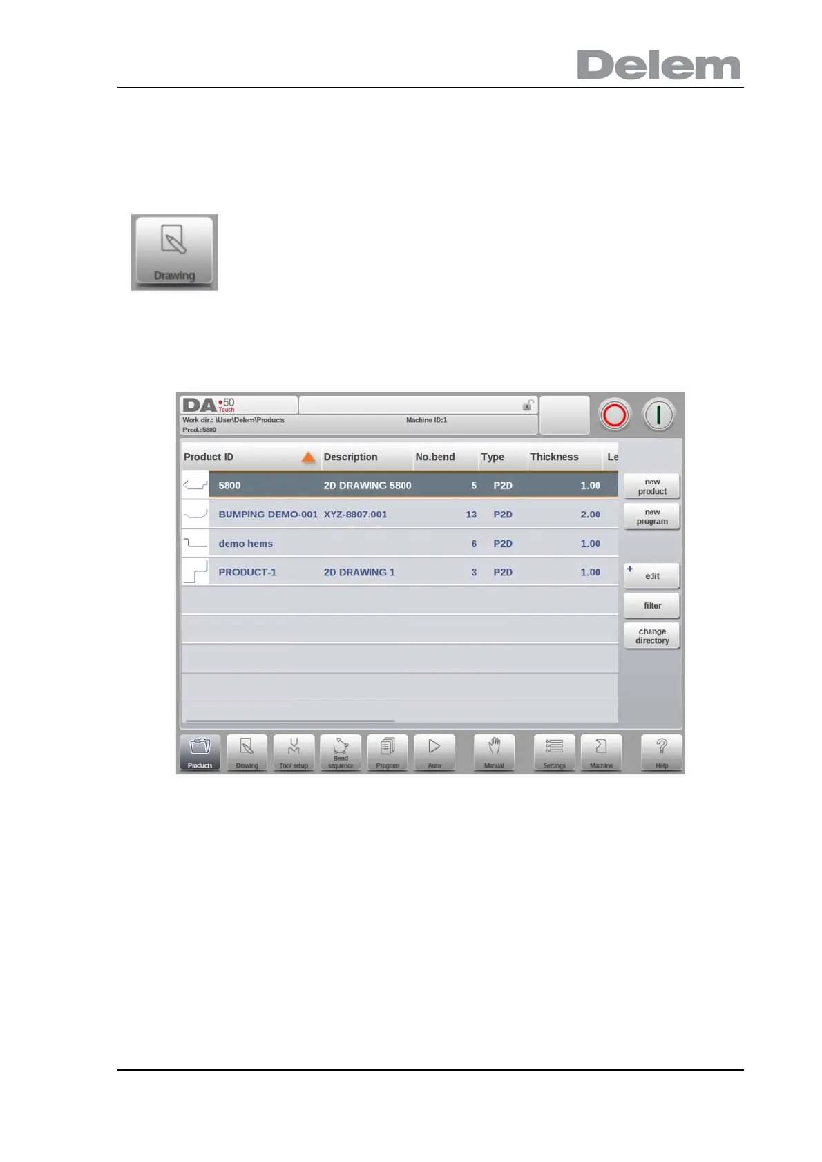 To edit an existing product drawing, choose the specific product