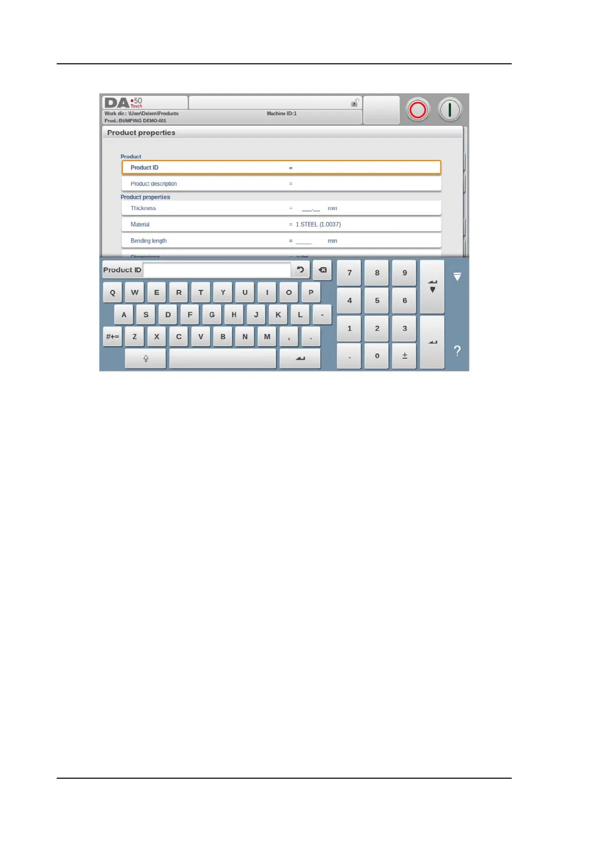 Selection of the material type of the sheet. The control contains 4 pre-programmed