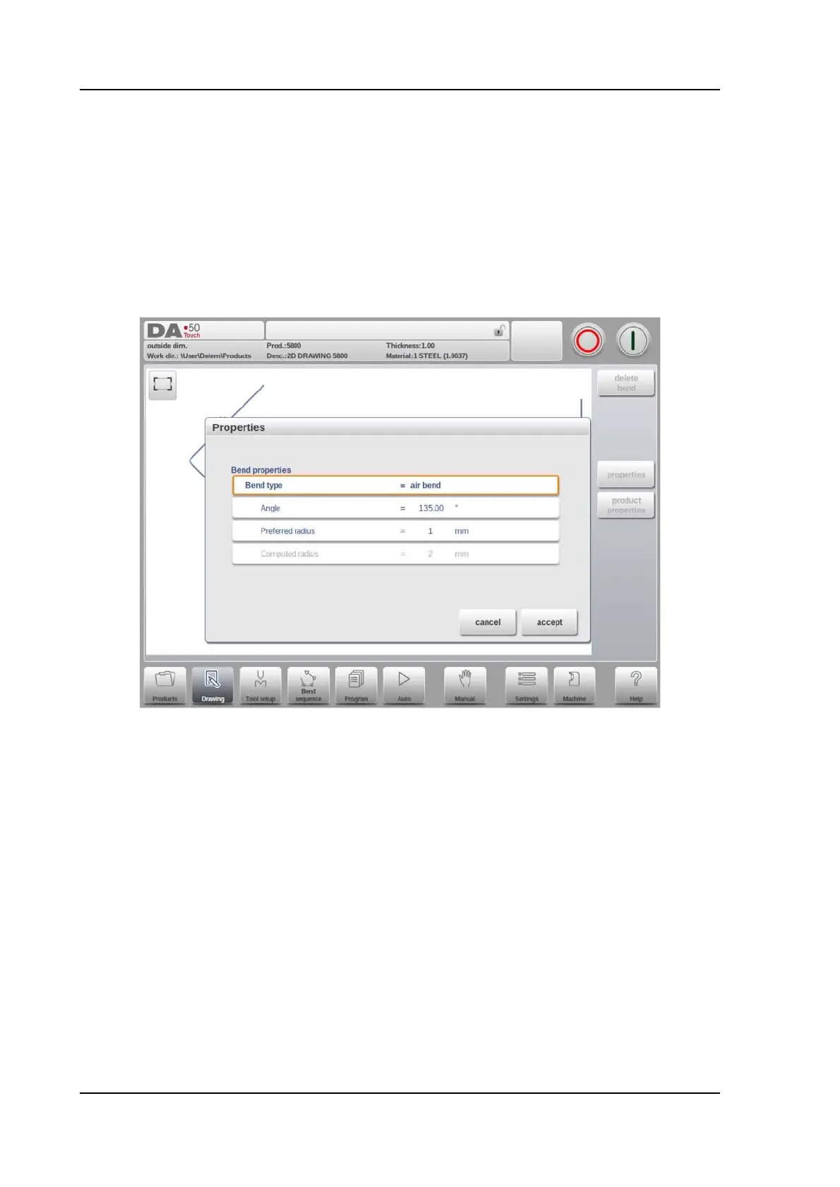standard or specific properties. The bend properties can be set by selecting the bend and