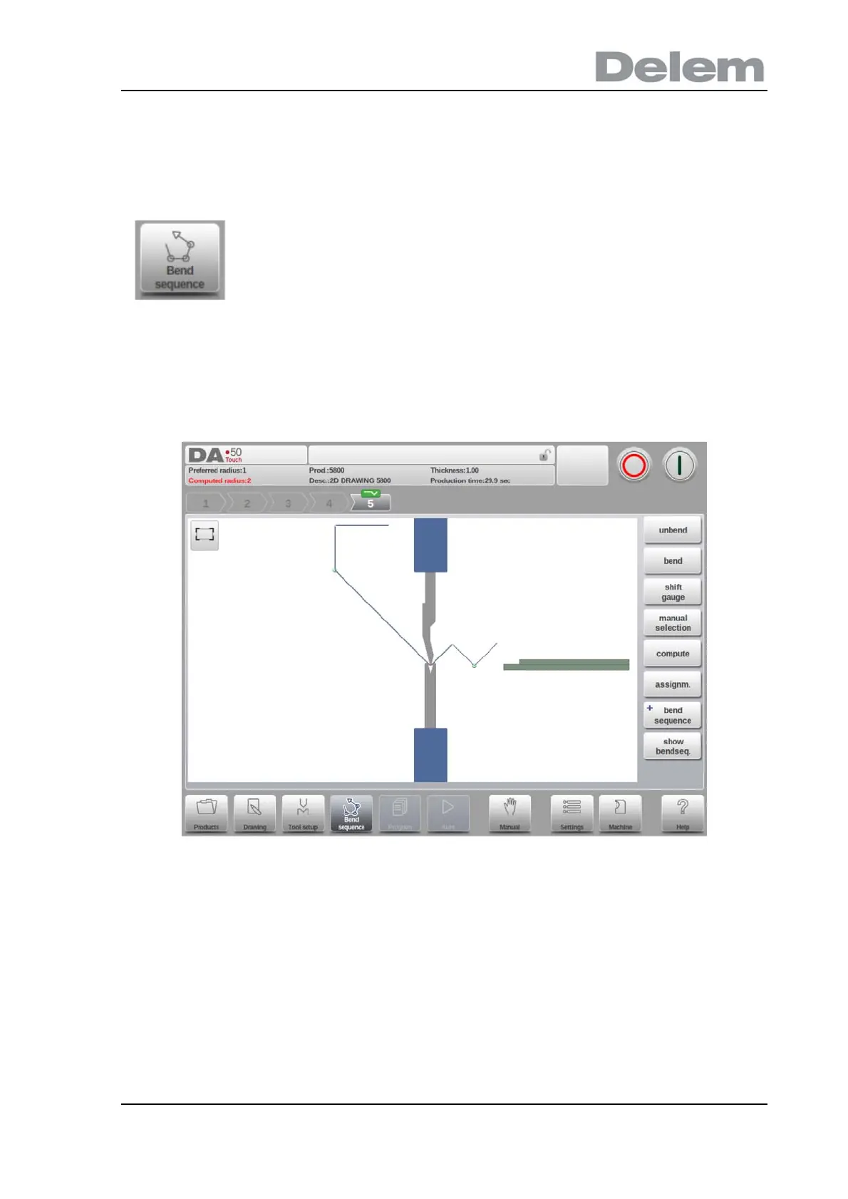 sequence for the active product. The bend sequence determination is started by tapping the