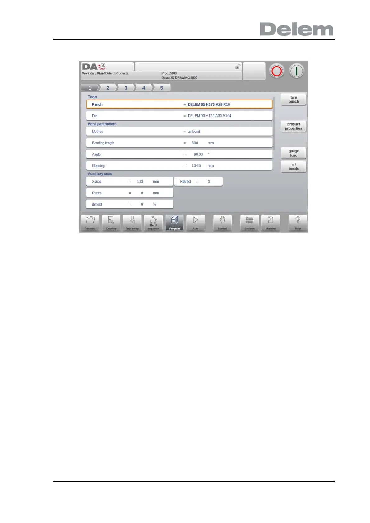 Opens a new window, in which product properties, effective for all bends, are shown and can