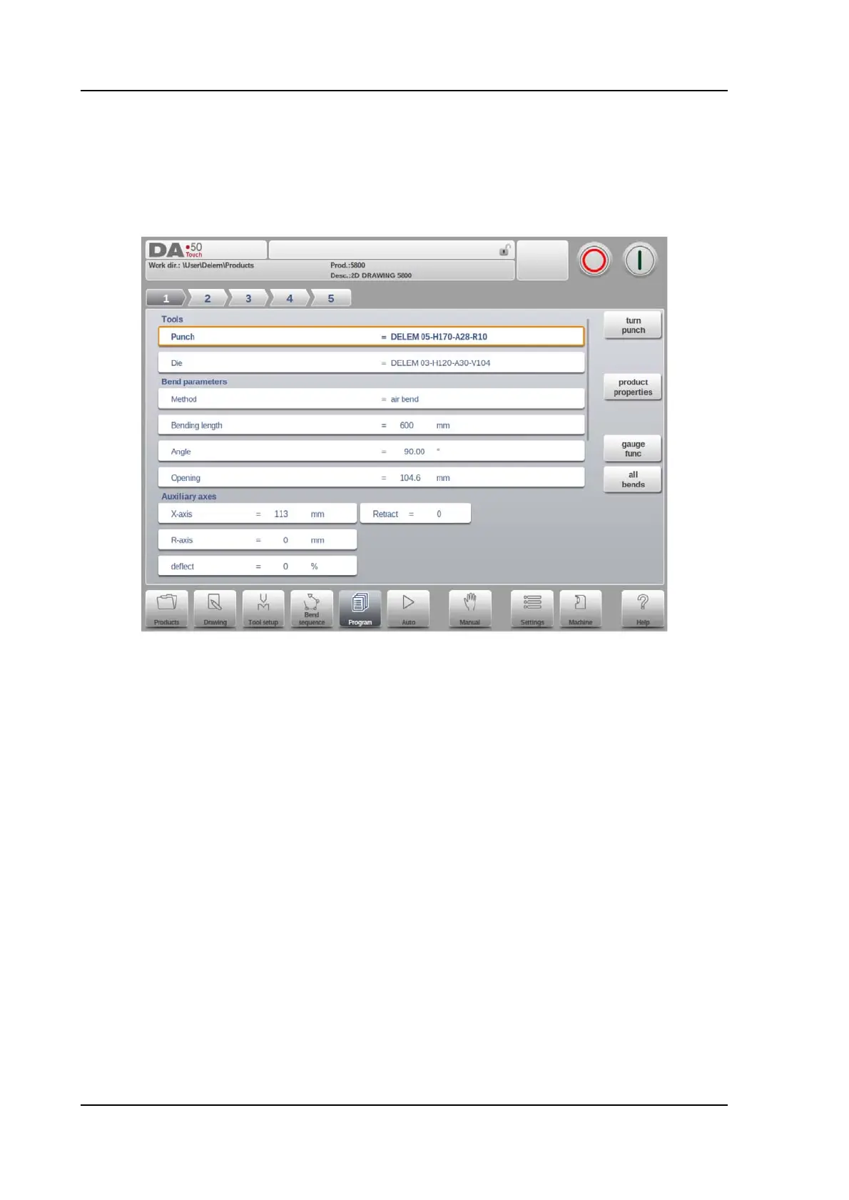 The parameters of every bend are listed on one page and can be scrolled thru. Below the