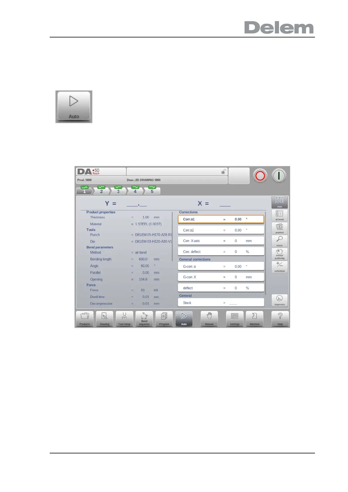 The automatic mode executes the program automatically bend by bend after pushing the Start