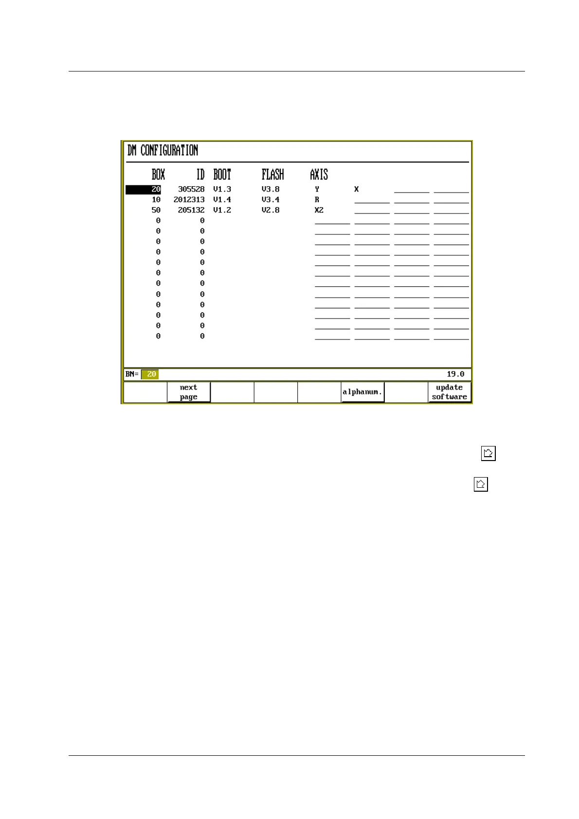 • In the second column, the DM-identifier of the module must be chosen with the key .