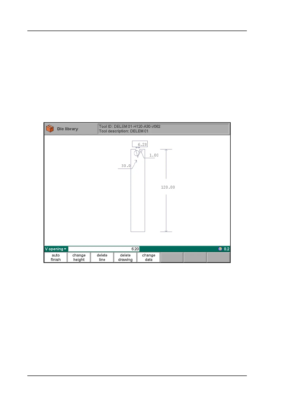 shaped die. Except program 180 degrees for the V-angle. When entered, the control prompts
