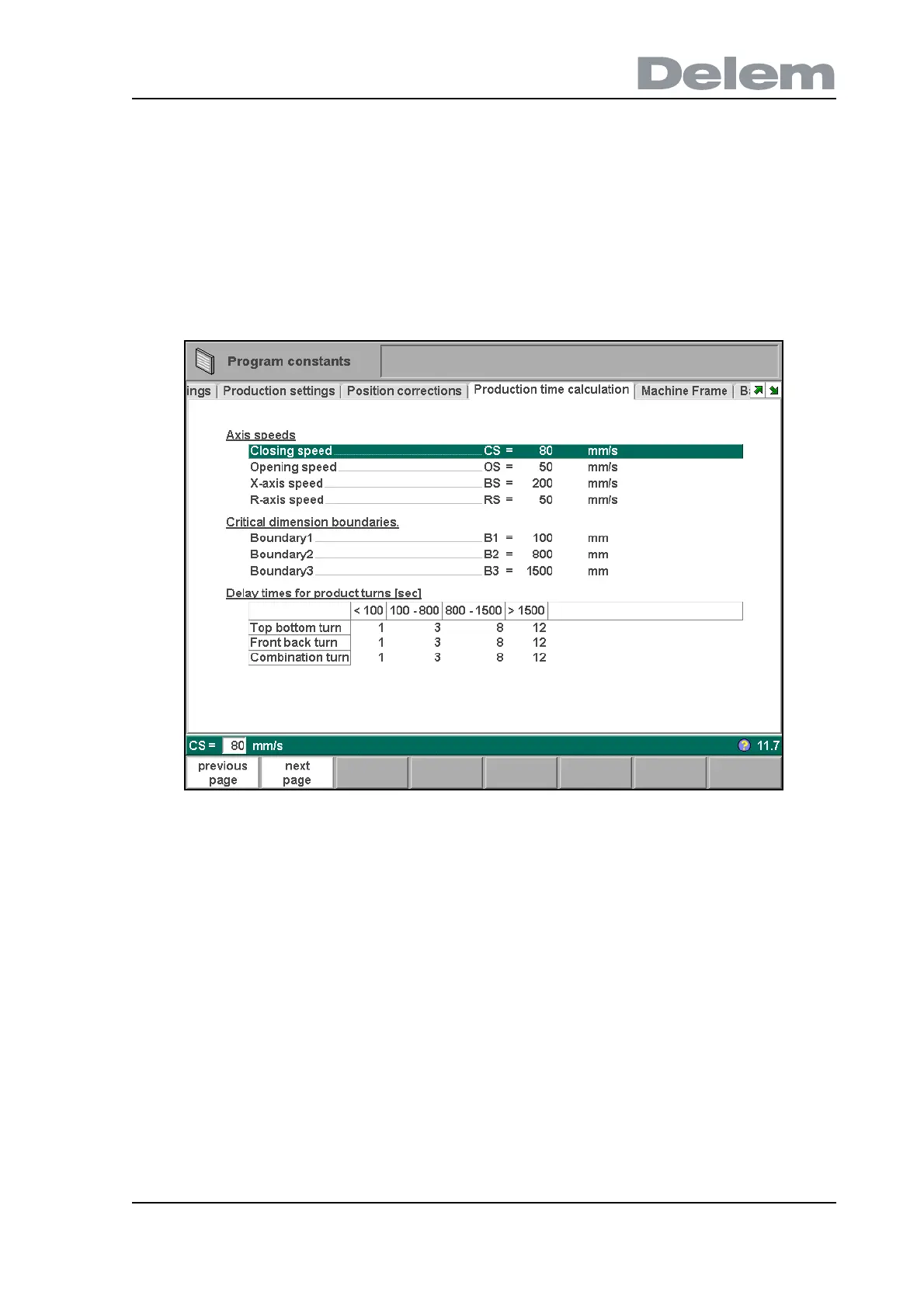 The parameters on this page are used to calculate the production time for a product. This