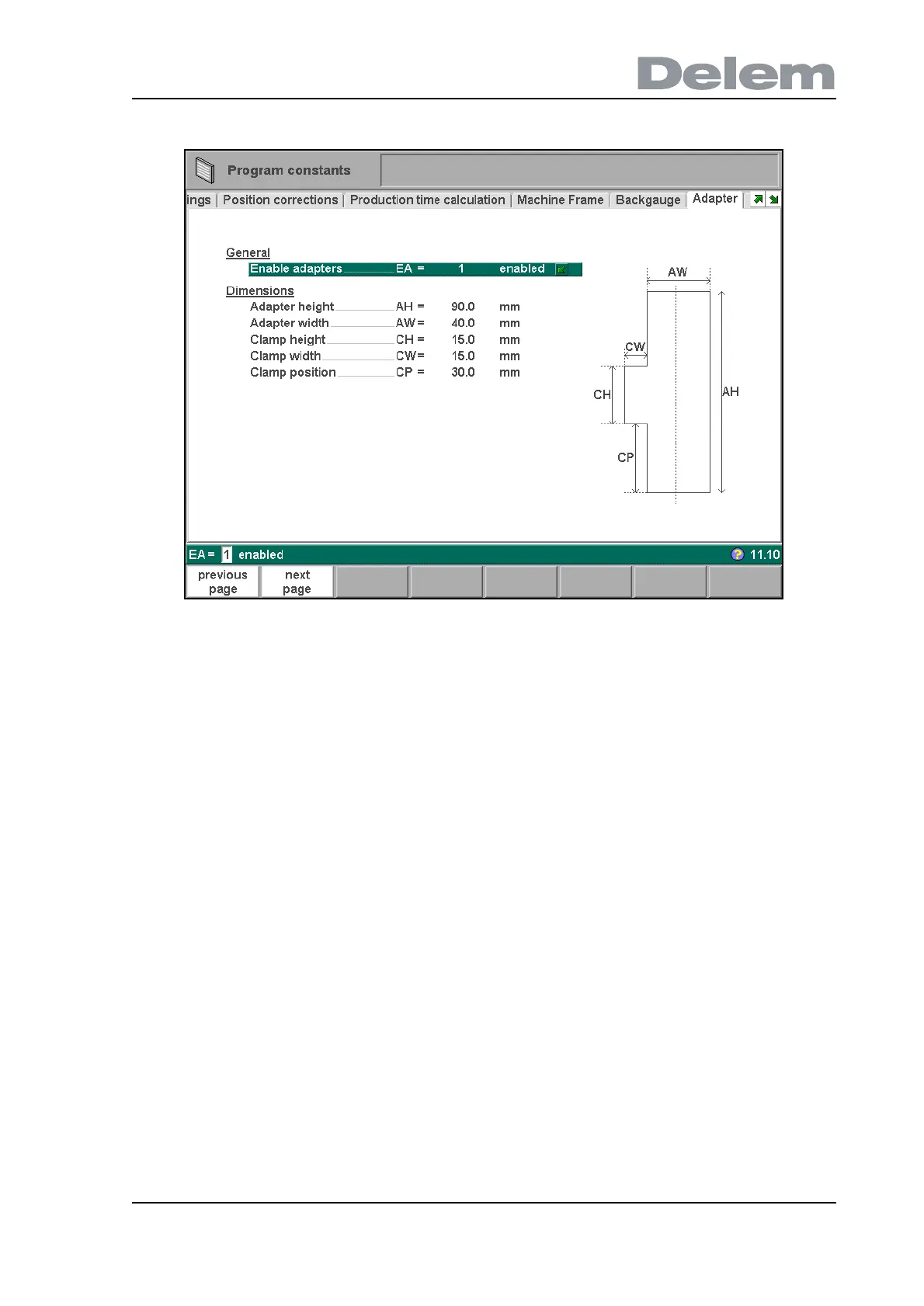 On this page a tool adapter can programmed. The programmed dimensions are used for