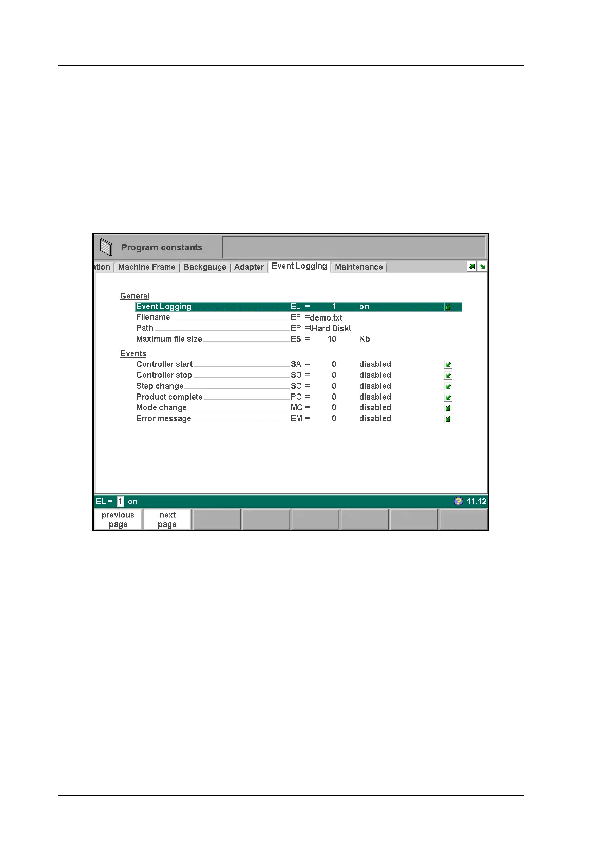 This page contains all parameters for the event logging function. The events that are logged