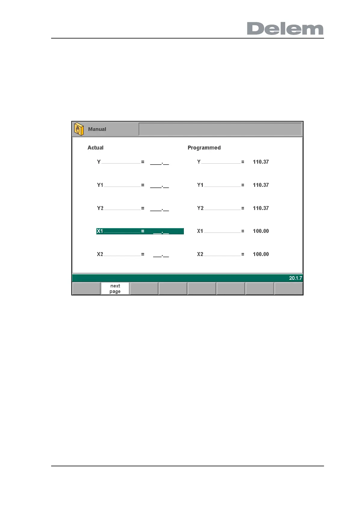 pressing the function key ‘manual pos’ in the main screen of manual mode, the following
