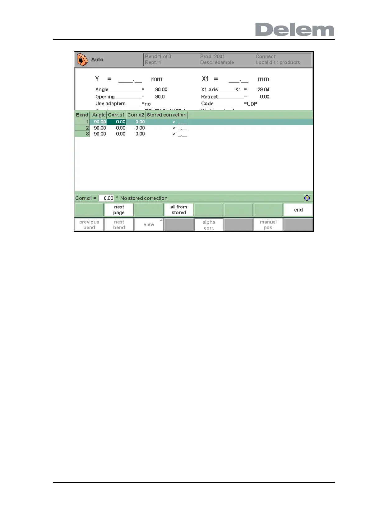 program: corrections in all bends are adjusted according to database values.