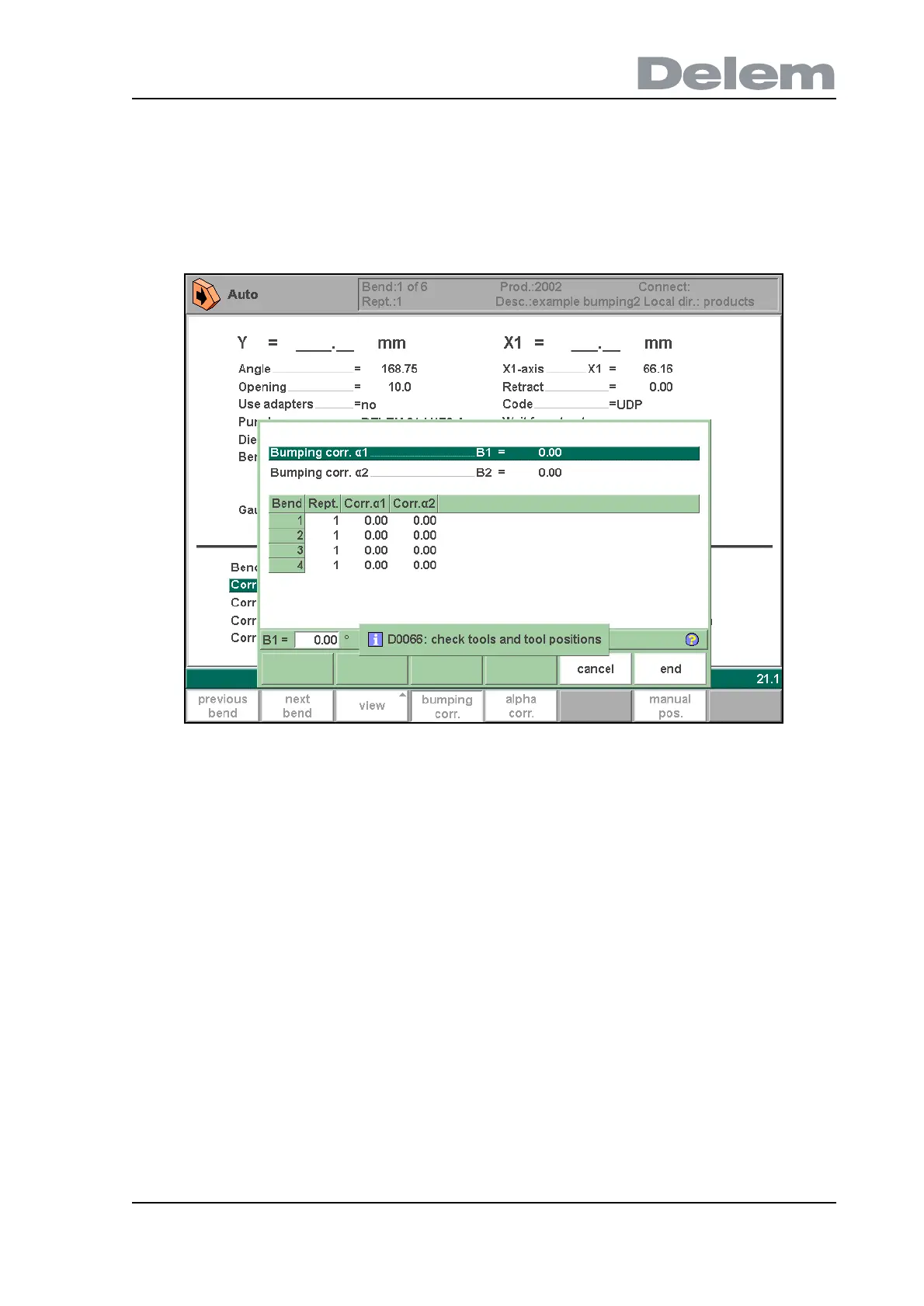 With this function a general correction for a radius bend can be entered. This function can be