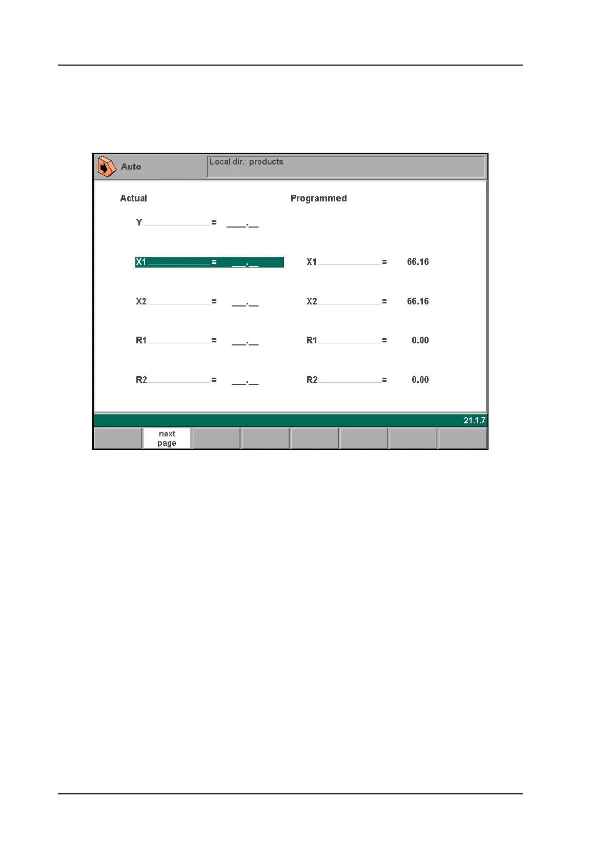 In the automatic production mode it is possible to move the selected axis manually with the