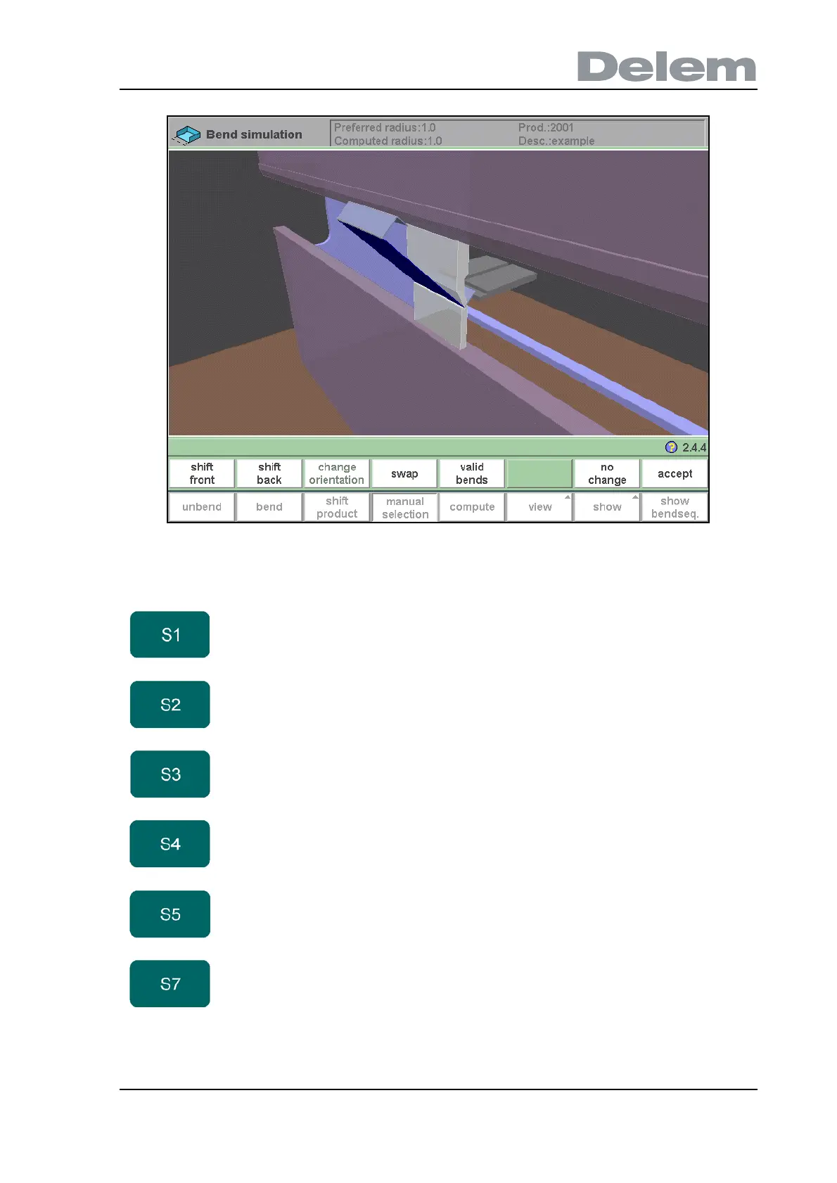 When pressed, other possible bends are highlighted.